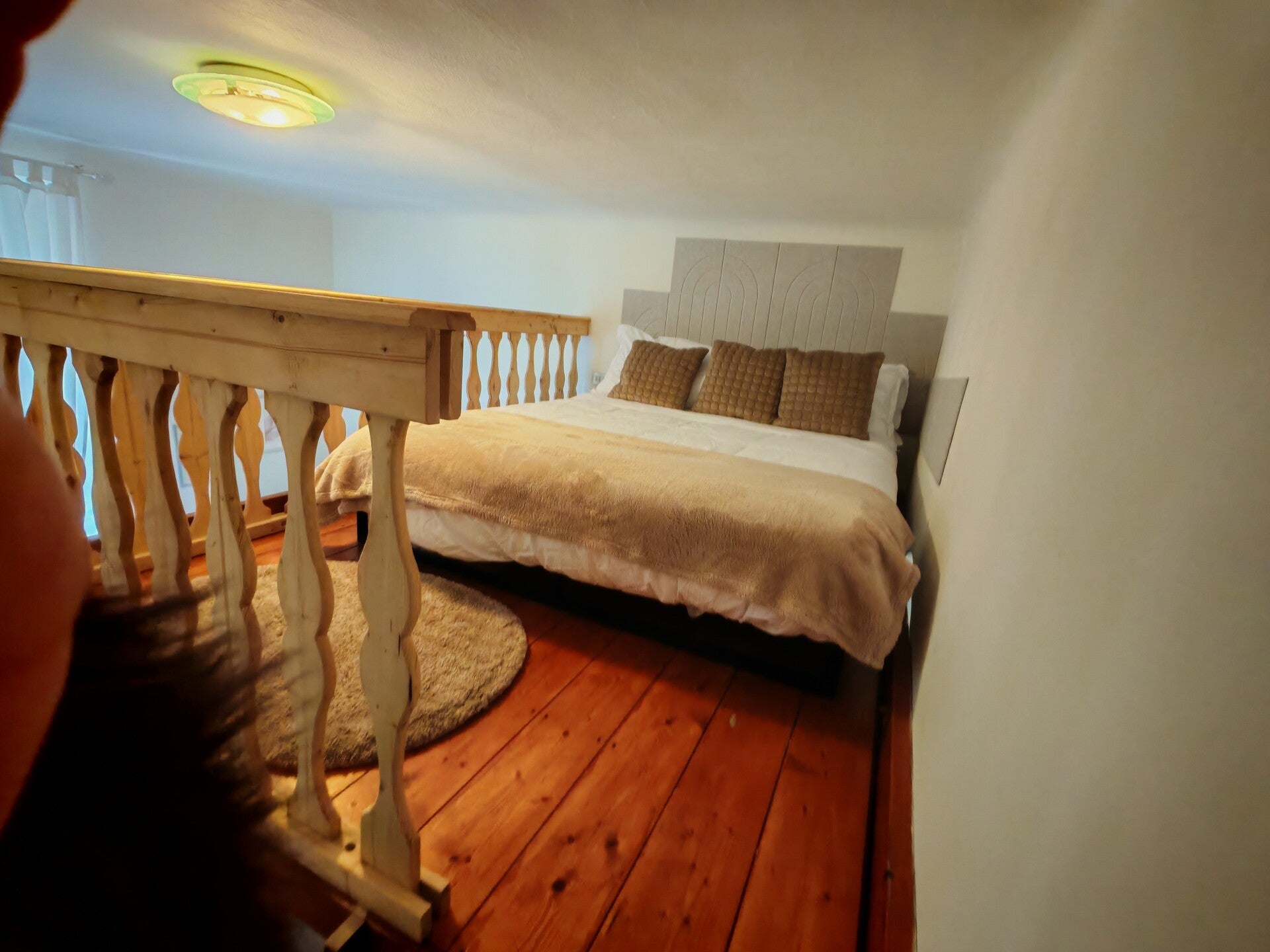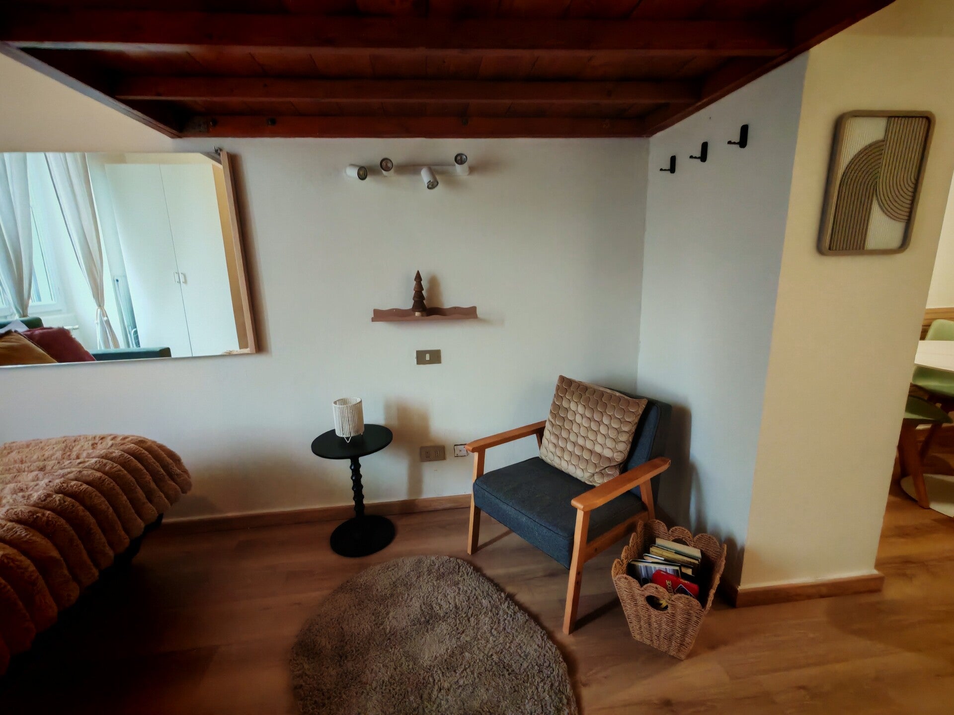Zona Notte (6 mq): Un soppalco dedicato al riposo che ospita un comodo letto matrimoniale, offrendo una piacevole separazione tra l'area conviviale e lo spazio notte.